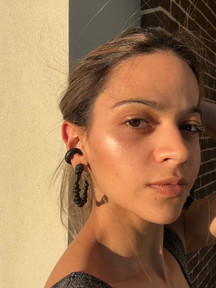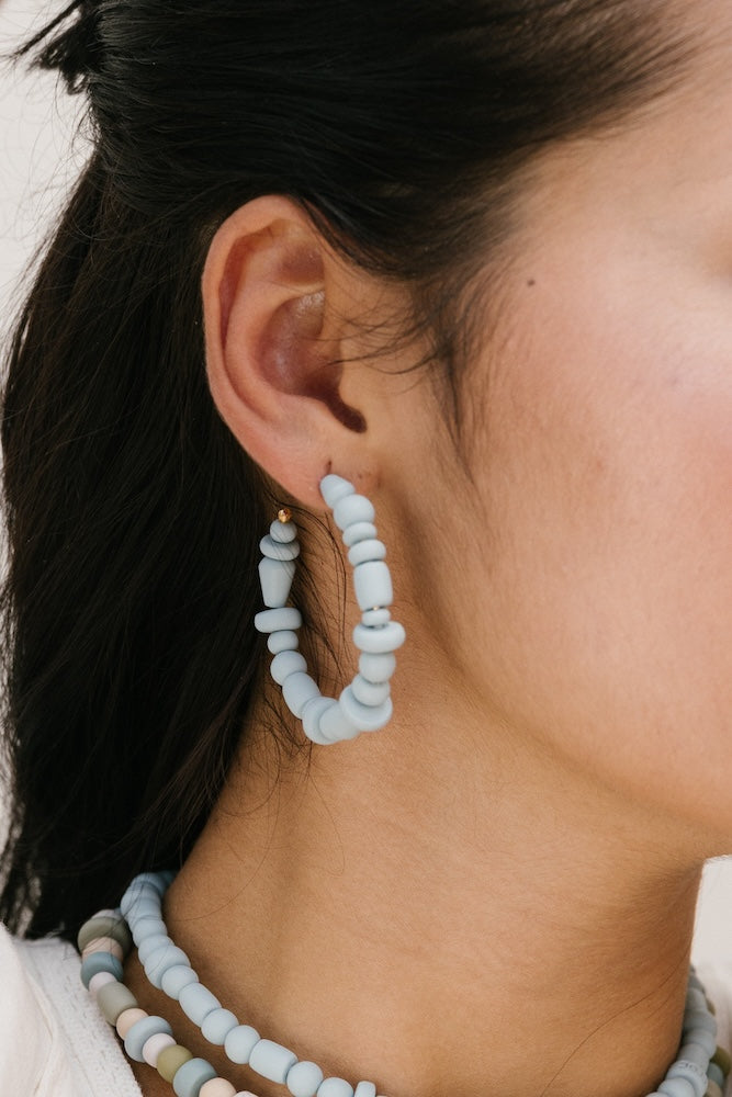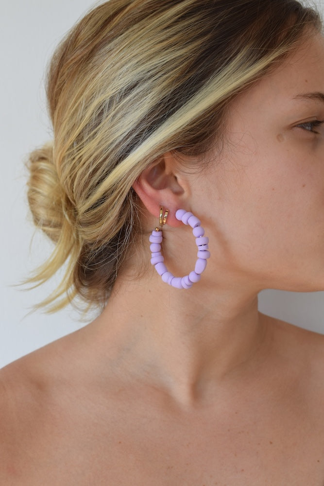 | The stylish design of our Clementine Medium Hoops, add a touch of volume and sophistication to any outfit. Super lightweight and waterproof. This handmade and unique piece is crafted from polymer clay, in a process full of dedication and love that starts combining different shades to get the desired colour. Then, rolling, cutting and shaping bring to life beautiful elements that after baked, are ready to compose a stunning piece. Since each bead and element is handmade, every piece is unique. Details of the craftsmanship can be seen, and colour and shape may variate. |
