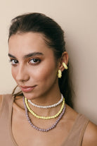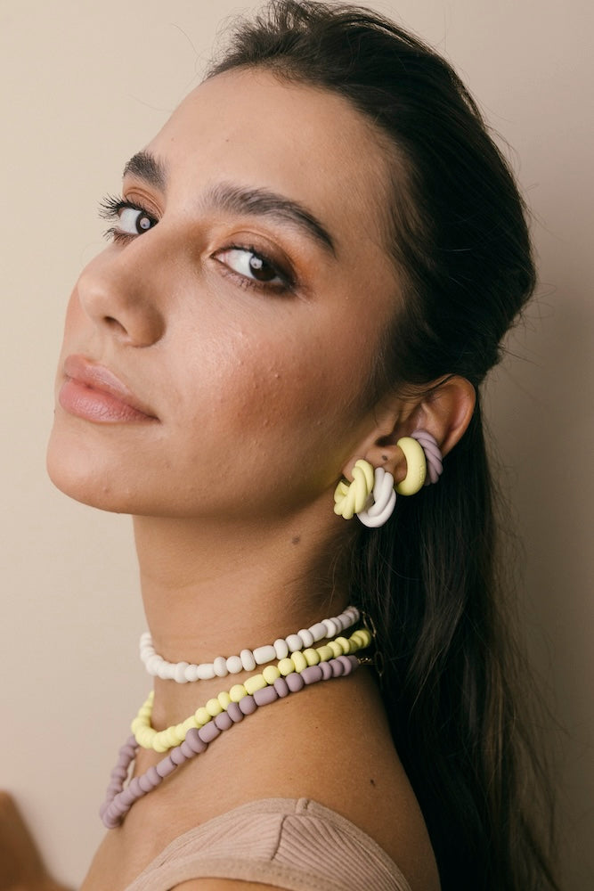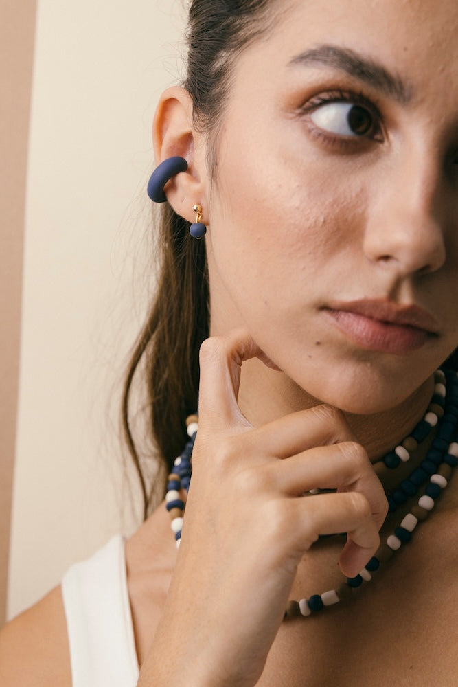 | Our Earcuff is a trendy and distinctive piece. Combine different colours and pair it with our collection of earrings for a unique layering. Easily slip it on or off from the thinnest part of your ear, no need for a piercing. Super lightweight, comfortable and waterproof. This handmade and unique piece is crafted from polymer clay, in a process full of dedication and love that starts combining different shades to get the desired colour. Then, rolling, cutting and shaping bring to life beautiful elements that after baked, are ready to compose a stunning piece. Since each bead and element is handmade, every piece is unique. Details of the craftsmanship can be seen, and colour and shape may variate. |