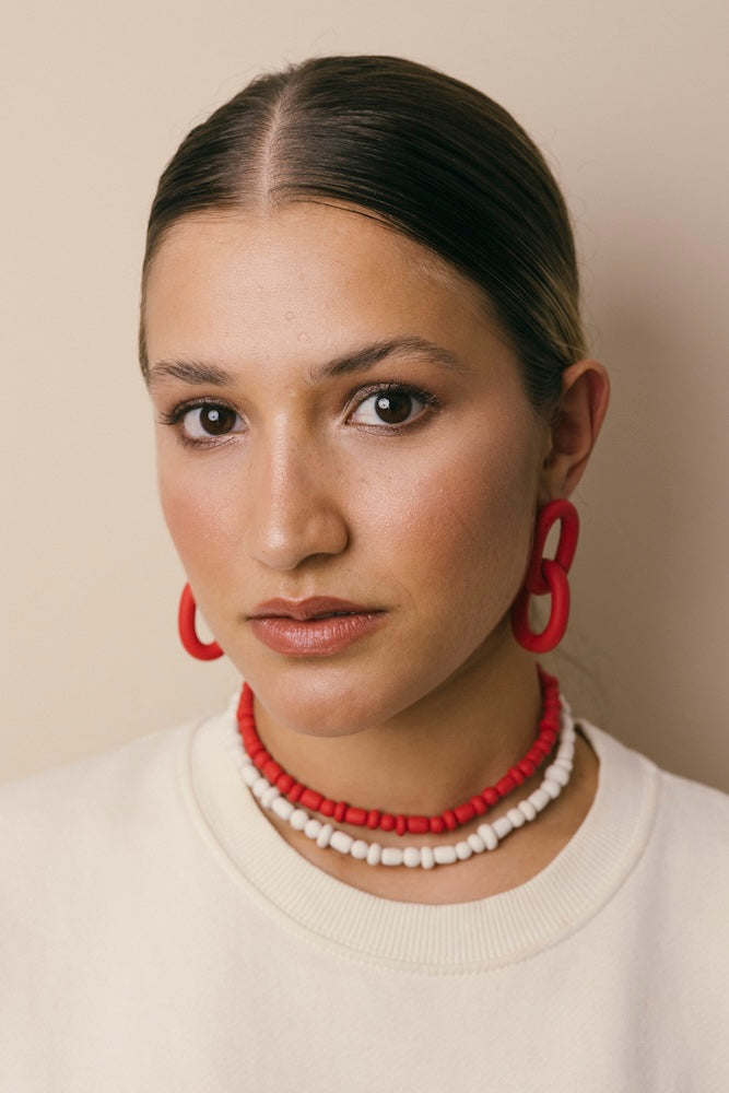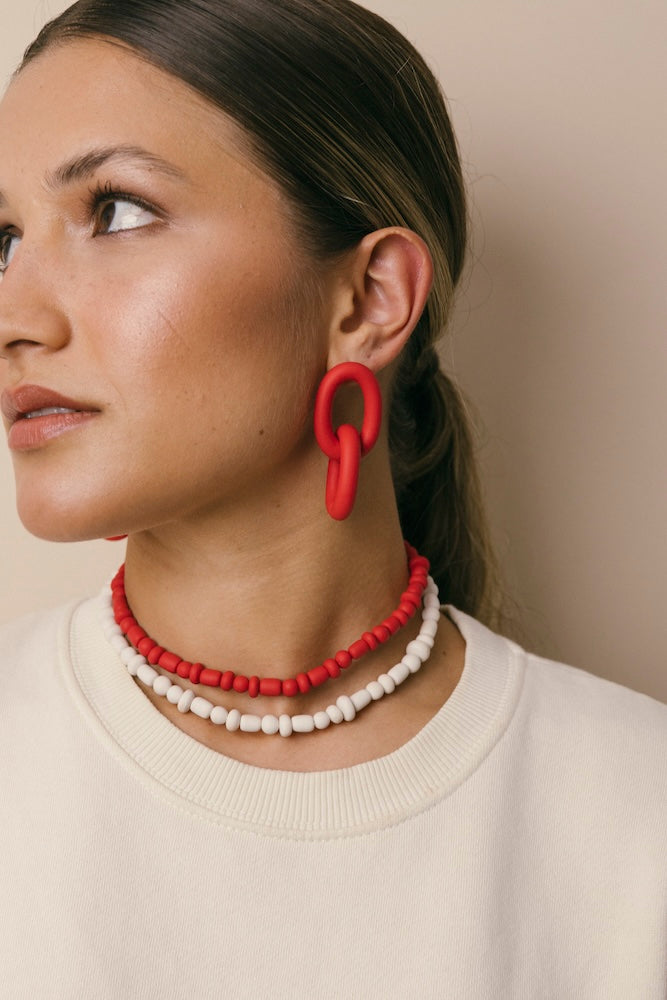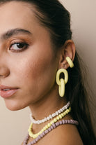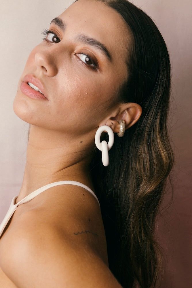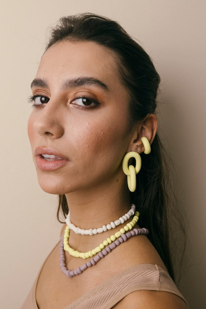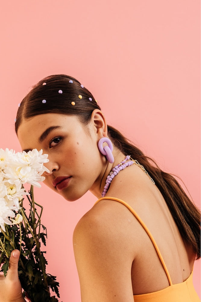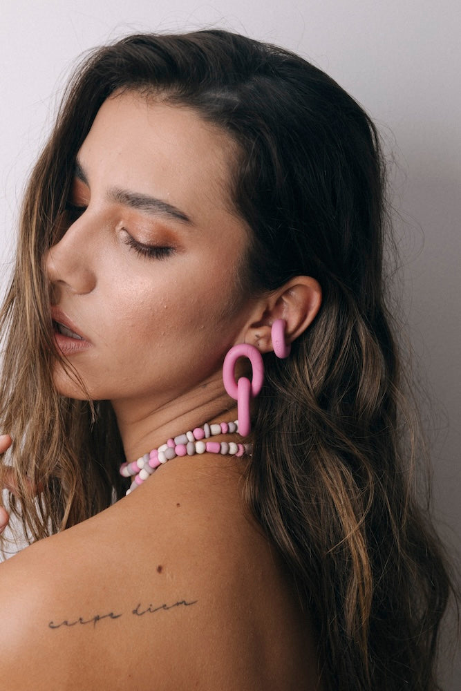 | Our Blooms Earrings have an eye-catching design, featuring links for an elevated look. Super lightweight and waterproof. This handmade and unique piece is crafted from polymer clay, in a process full of dedication and love that starts combining different shades to get the desired colour. Then, rolling, cutting and shaping bring to life beautiful elements that after baked, are ready to compose a stunning piece. Since each bead and element is handmade, every piece is unique. Details of the craftsmanship can be seen, and colour and shape may variate. |