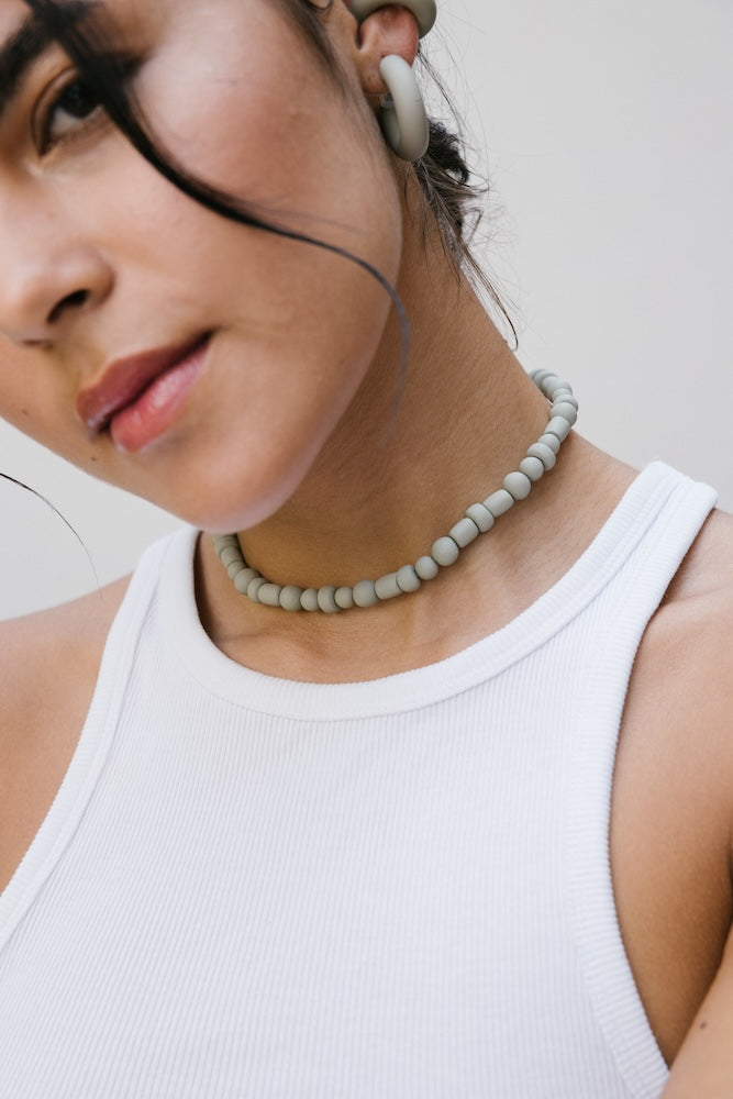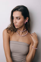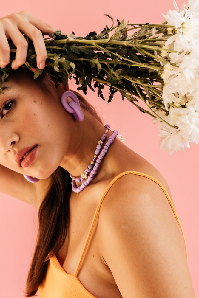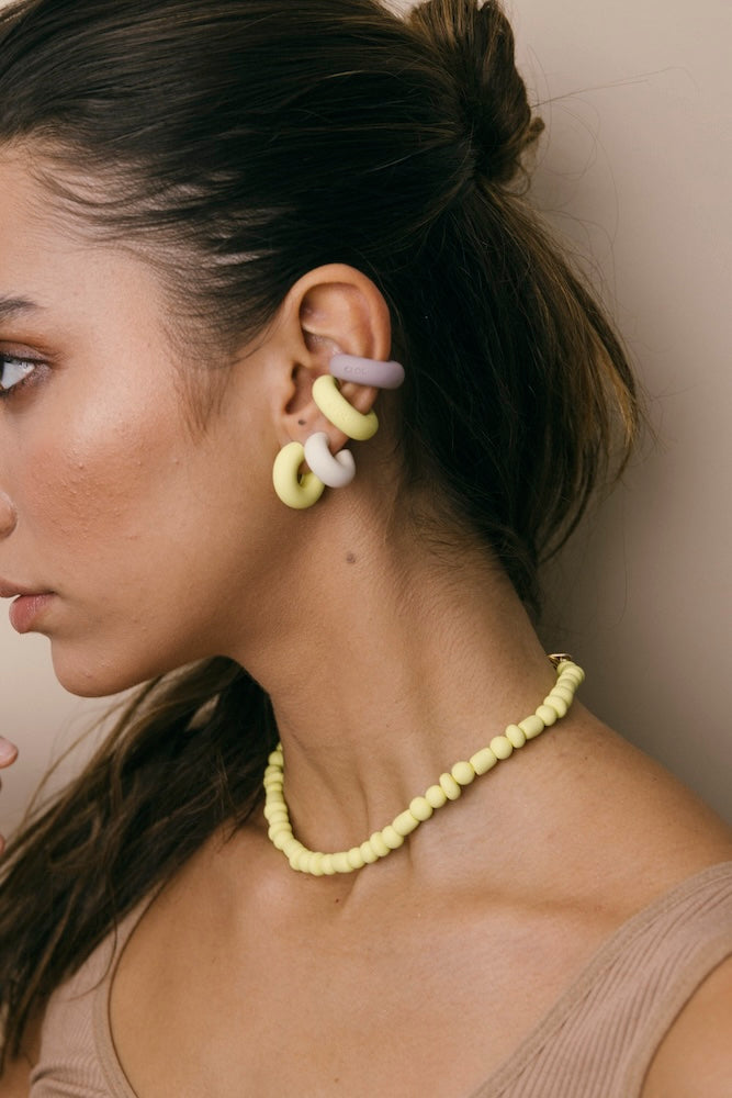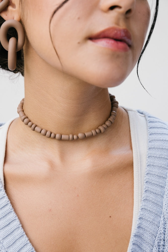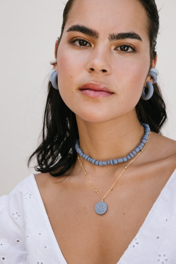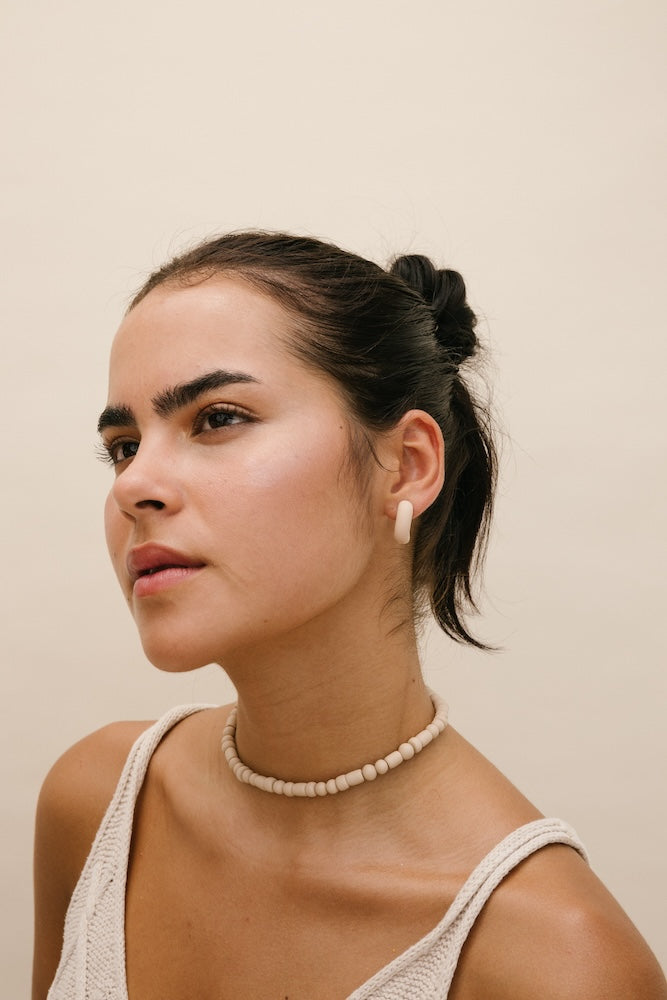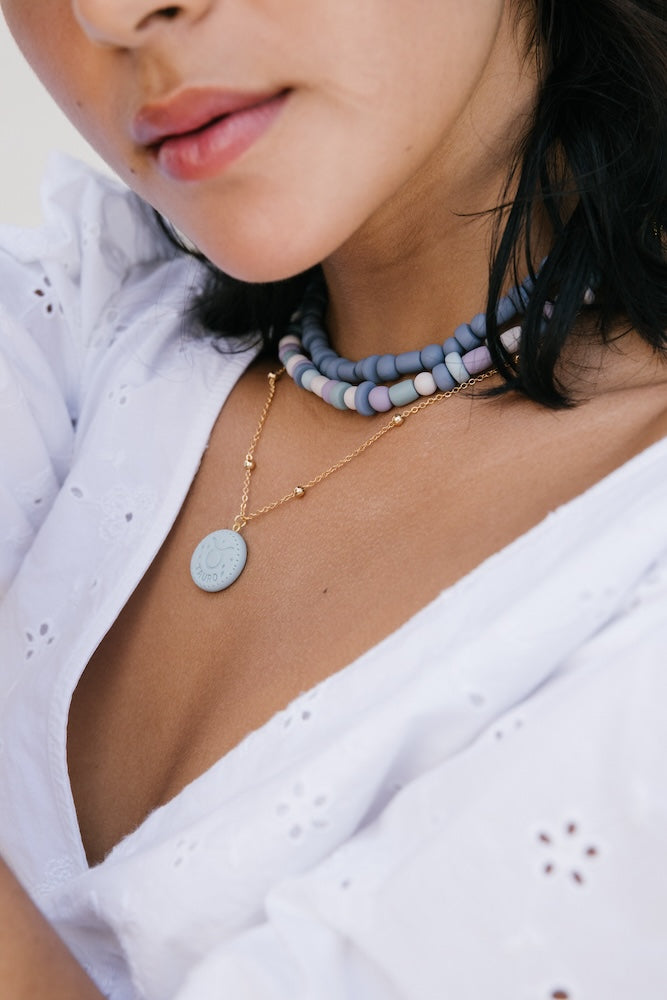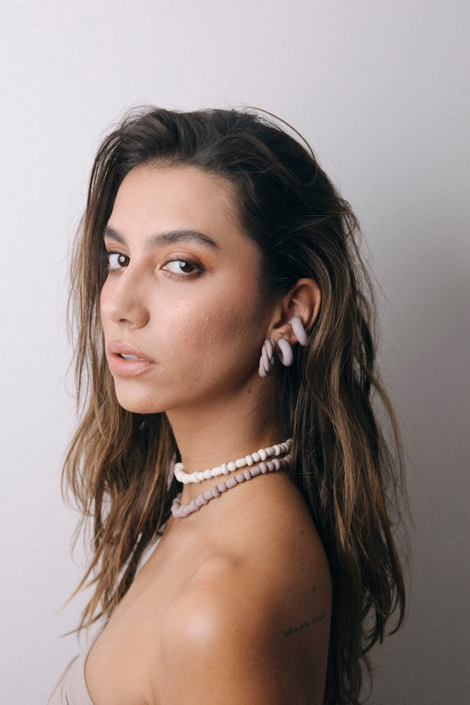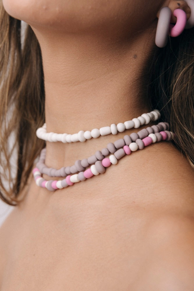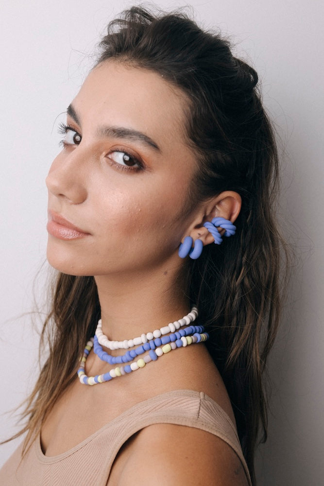 | Our timeless Choker gives a glamorous touch to your look. Wear it alone or combine it with other necklaces to make a unique layering. It can also be worn as a double bracelet. This handmade and unique piece is crafted from polymer clay, in a process full of dedication and love that starts combining different shades to get the desired colour. Then, rolling, cutting and shaping bring to life beautiful elements that after baked, are ready to compose a stunning piece. Since each bead and element is handmade, every piece is unique. Details of the craftsmanship can be seen, and colour and shape may variate. |