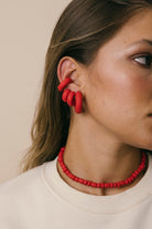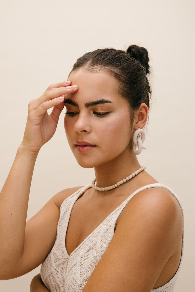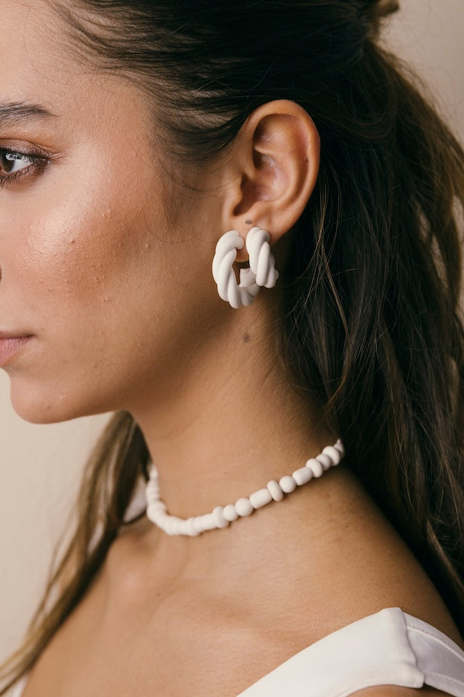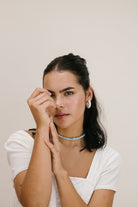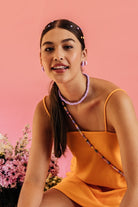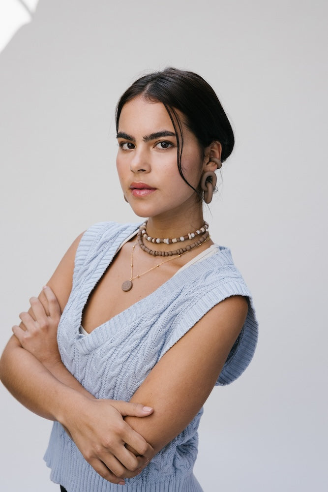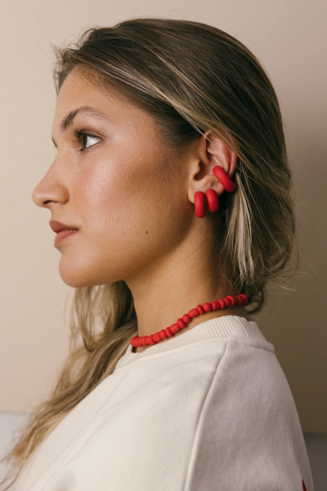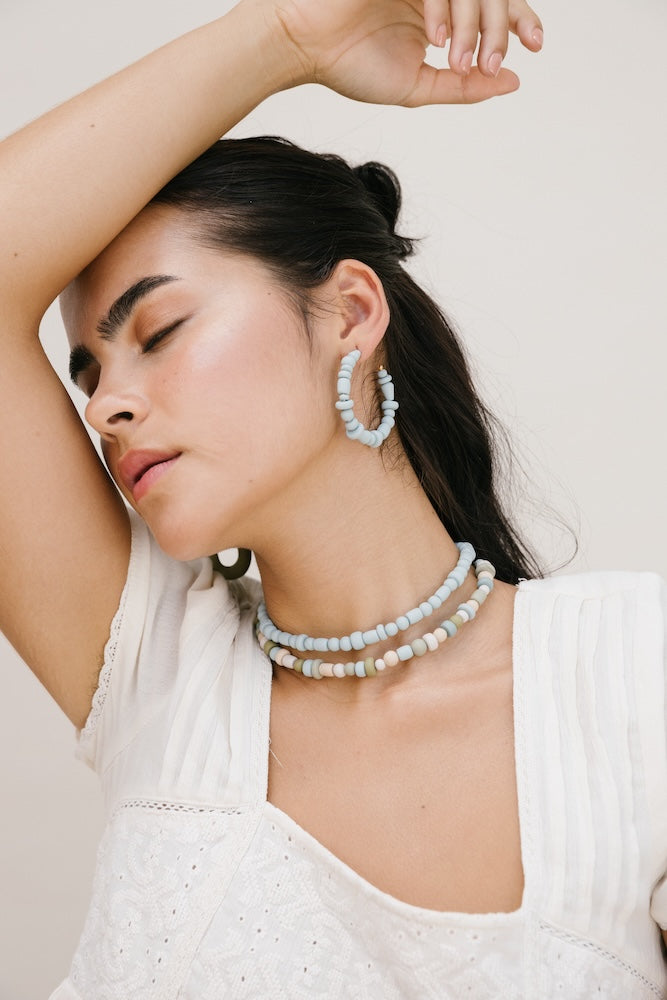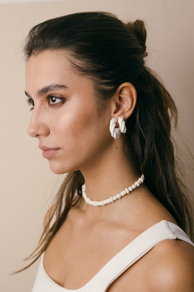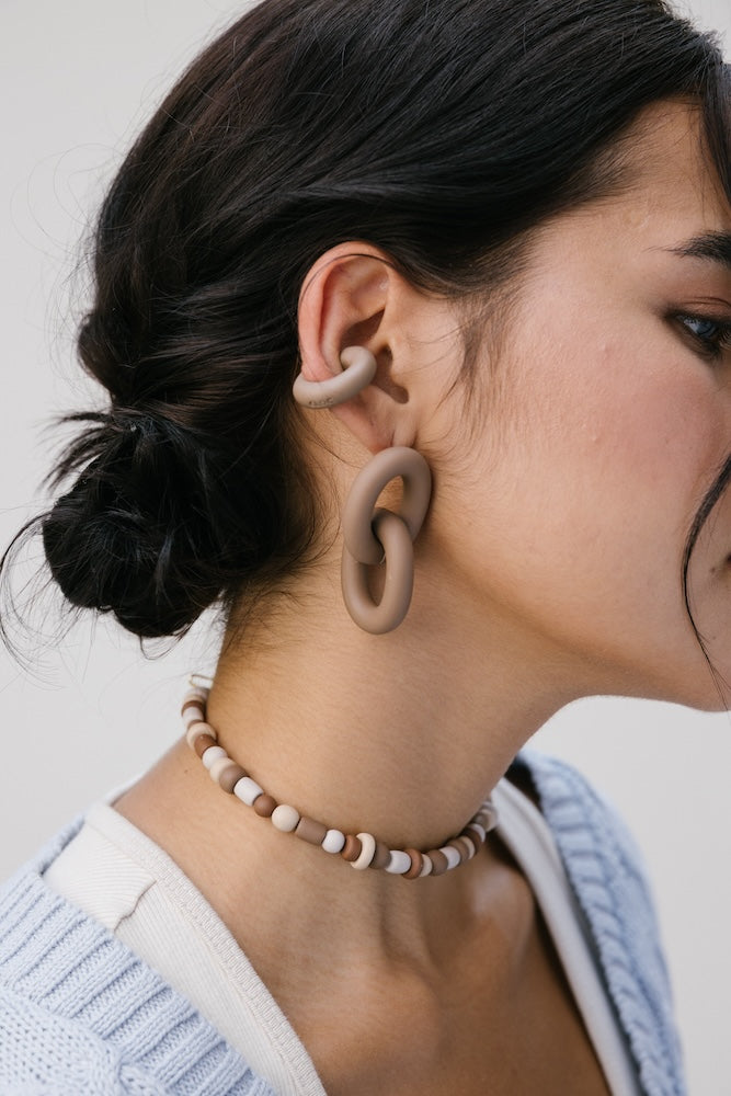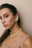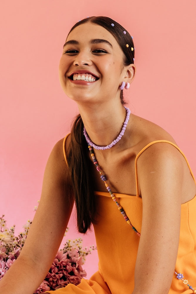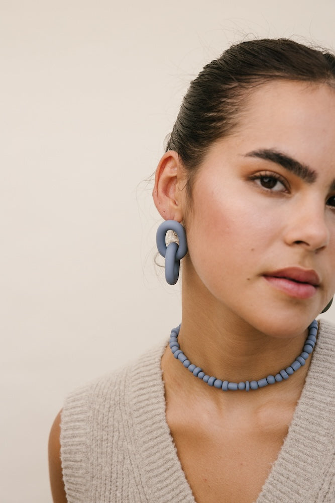 | Our timeless Choker gives a glamorous touch to your look. Wear it alone or combine it with other necklaces to make a unique layering. It can also be worn as a double bracelet. This handmade and unique piece is crafted from polymer clay, in a process full of dedication and love that starts combining different shades to get the desired colour. Then, rolling, cutting and shaping bring to life beautiful elements that after baked, are ready to compose a stunning piece. Since each bead and element is handmade, every piece is unique. Details of the craftsmanship can be seen, and colour and shape may variate. |