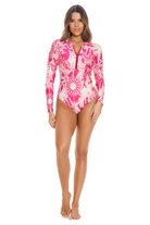 Our Rising One Piece is a must for an adventure under the sun. It has removable cups, front zip, abdomen control to stylise the figure, and backless design to add a touch of sensuality to your look while you do your favourite water activities. A stunning, unique and stylish piece with UV protection SPF +50, quick-drying and resistant to pilling fabric with a spectacular print.