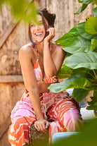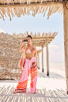 Our Ritmo Rosa Pants will undoubtedly turn heads. Made in a fresh and lightweight fabric that does not wrinkle, a wide boot silhouette and a paper bag waist with a beautiful twisted belt handmade by artisans. A stunning piece that creates a statement in your look.