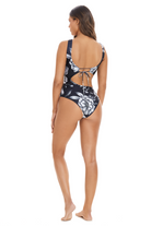 Our Blanco y Negro One piece features "U" neckline, side skin window with decorative ring, and abdomen control to stylise the figure. A unique design with a timeless print, UV protection SPF +50, quick-drying and resistant to pilling fabric. You can also wear it as a bodysuit for a sensual and elegant look.