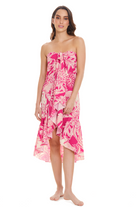 Our Rising Pareo is a versatile piece that can be worn in different ways. It features a lightweight fabric, a stunning print, ruffle detail and belt to tie as skirt or dress. Wear it over our Rising Bikini Set for a complete and romantic look.