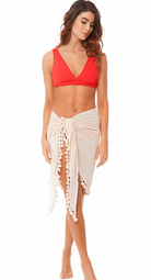 Our Vainilla Pareo is a versatile cover up piece that can be worn in different ways. Its half moon design features a lightweight fabric and pompoms along its lower edge, giving you a romantic and feminine look. Wear it on your waist over your favourite swimwear piece or even on your shoulders as a shawl over a dress for those colder days.