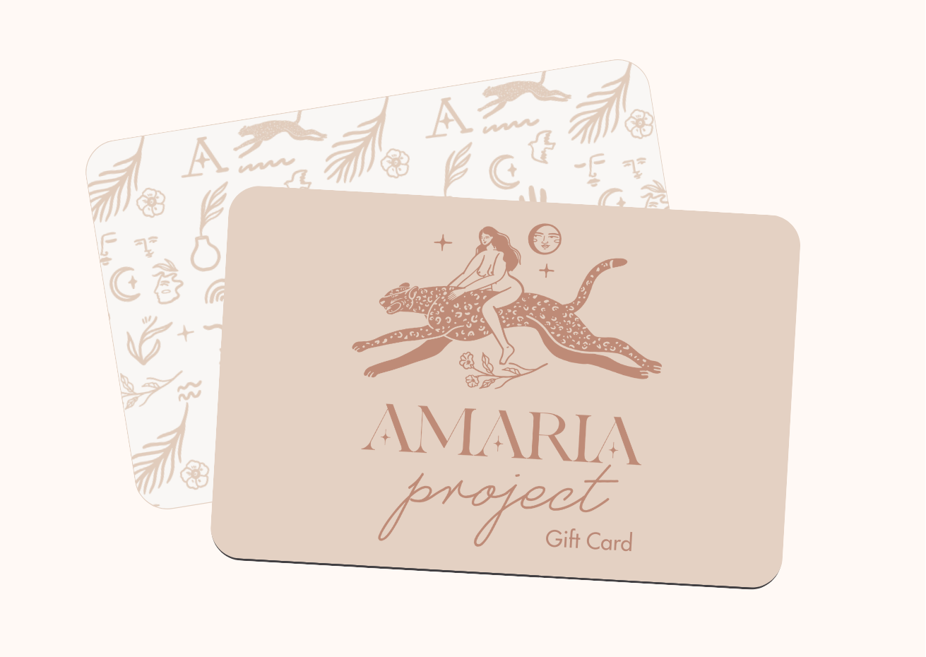 Choose from our variety of card values and after checked out, your Amaria Project gift card will be generated and emailed to you ready to use on our website.